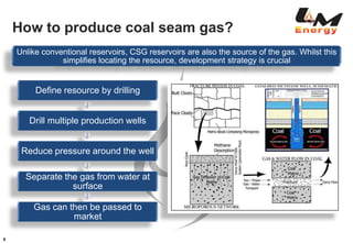 Coal seam gas is a form of natural gas typically extracted from coal seams at depths of 300-1000 metres.